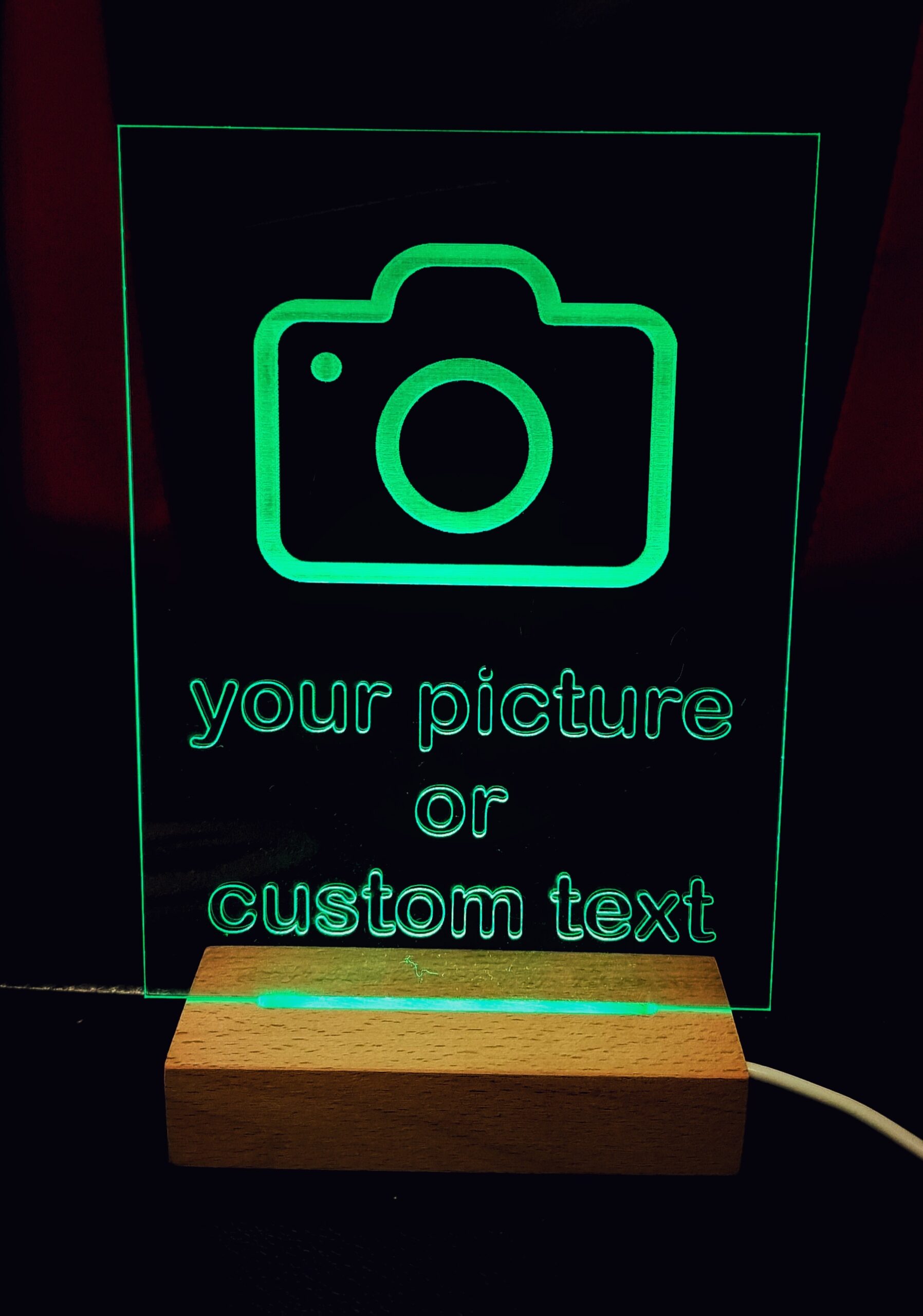 One of our favourite things to make as the results are awesome! Light up your favourite image, text or both with this awesome LED night light with wooden base. Powewered by a fixed USB cable with inbuilt controls which allow you to cycle select one of the 7 colours and adjust the brightness or choose…