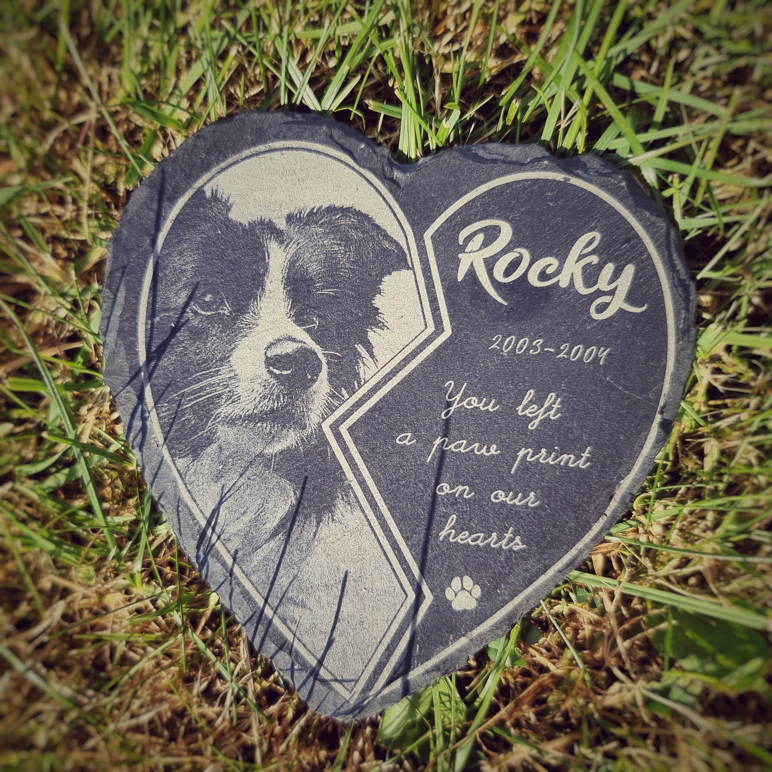A slate heart is a classic and elegantly simple way to remember a beloved pet. The natural slate material gives a timeless feel, and the personalized text engraving allow you to create a unique and heartfelt tribute to your furry friend. The sleek and minimalist design of the heart blends with any décor and makes it perfect for both indoor and outdoor display. The smooth surface of the slate provides the ideal canvas for your personalized text, creating a lasting memory that will always serve as a reminder of the love you shared with your pet. This slate heart offers a simple way to remember your pet and pay tribute to the special bond you shared, making it a touching and enduring memorial.